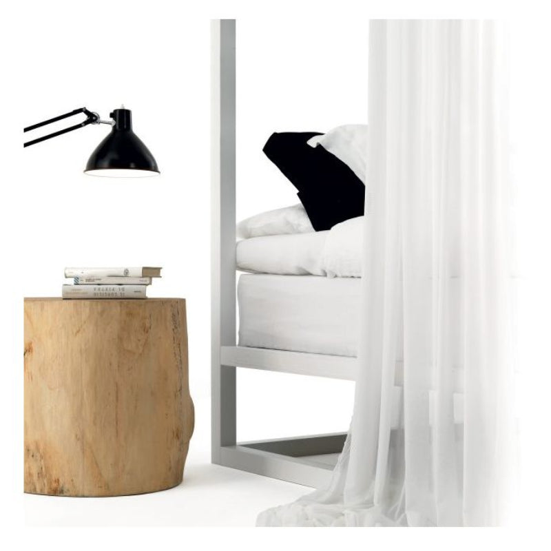 Design par Marcantonio. Petite table en bois massif avec finition naturelle, lampe (CE IMQ) et fil électrique gainé de tissu rouge longueur mt.3. Lampe en métal noir (ampoule non incluse MAX 60W E14).